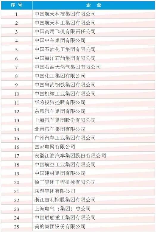 2018年度中國(guó)工業(yè)影響力企業(yè)(排名不分先后)