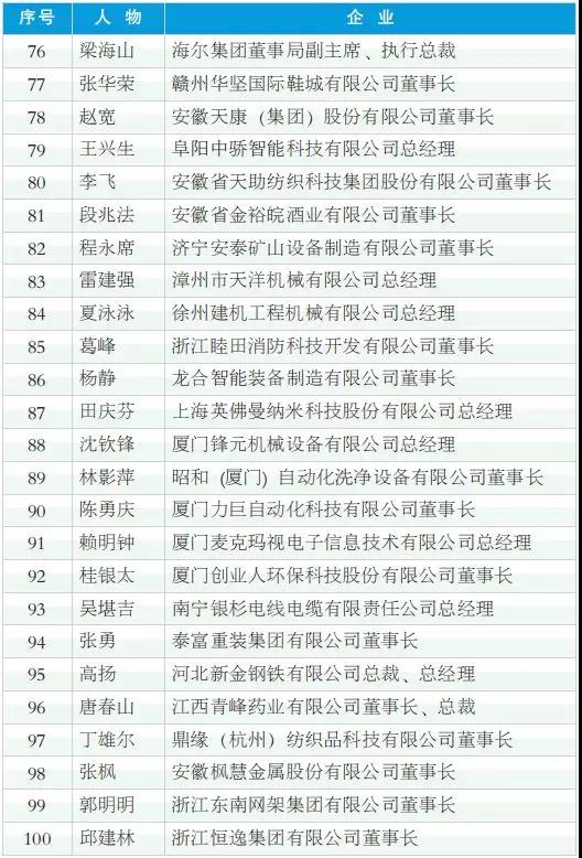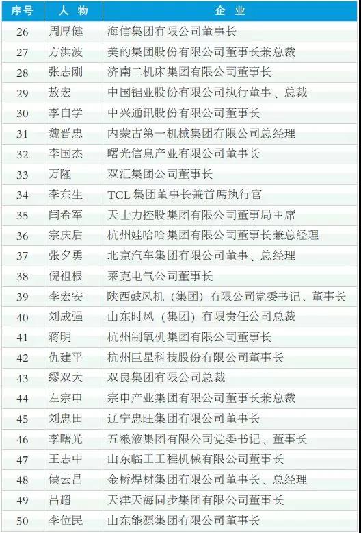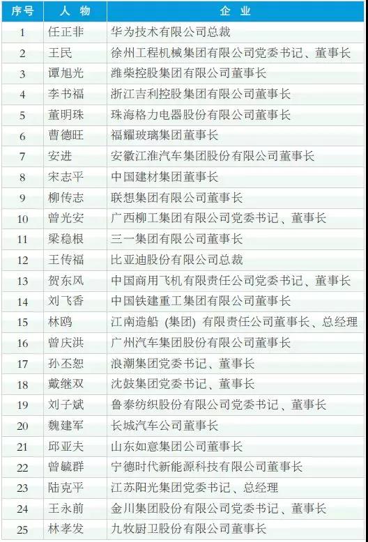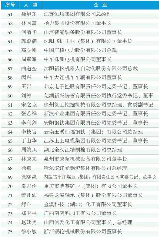 2018年度中國(guó)工業(yè)影響力人物(排名不分先后)