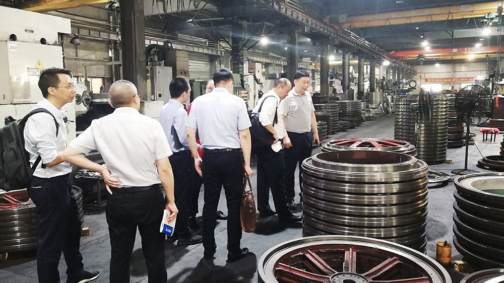會后,在董事長傅開實陪同下,專家組一行人走進車間,深入了解公司的生產(chǎn)情況以及針織大圓機的制作工藝。